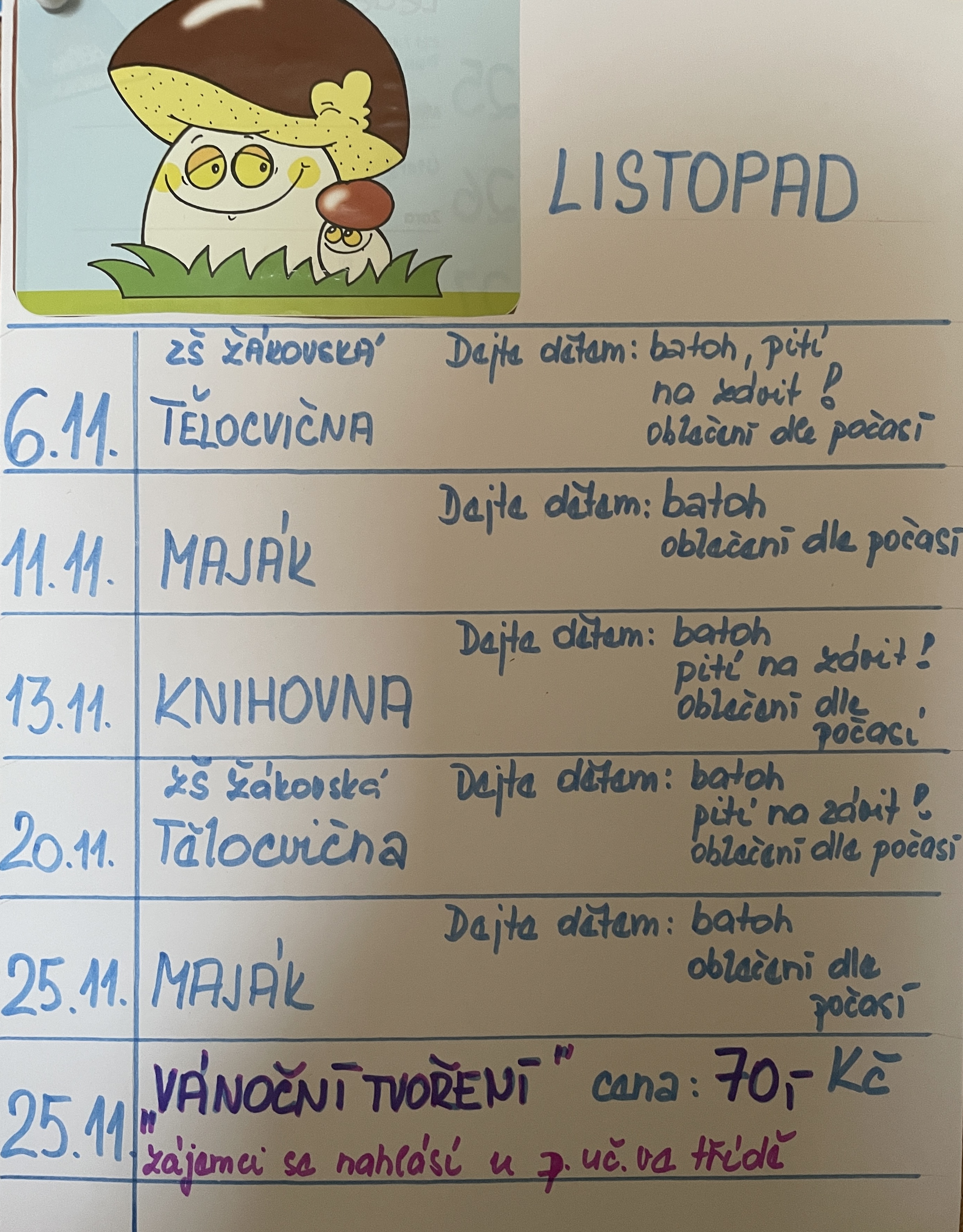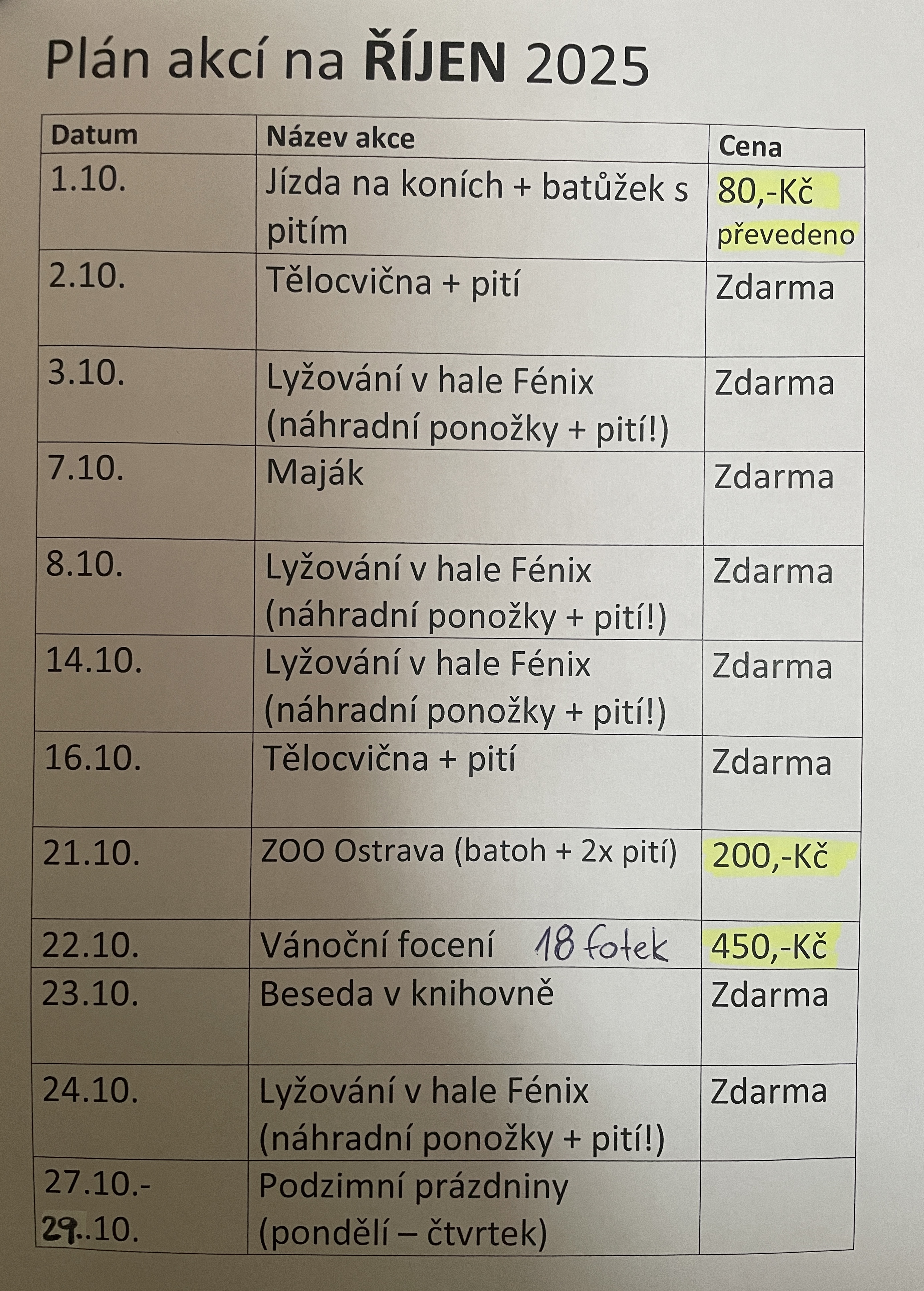 Školné je nutno uhradit vždy do 15. dne v měsíci.