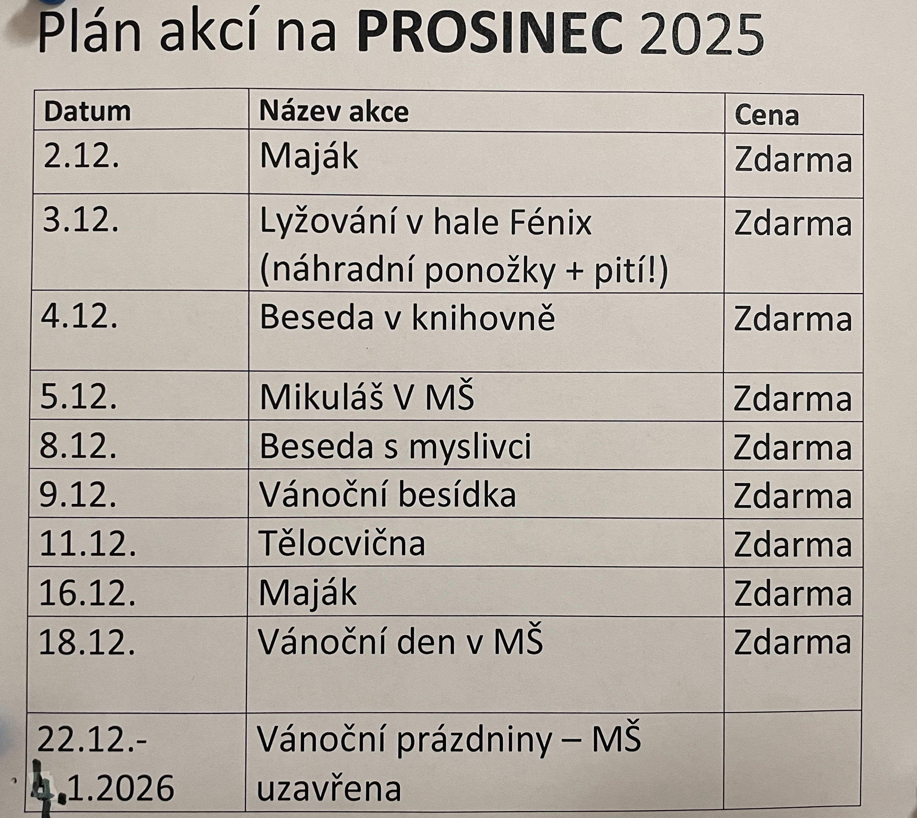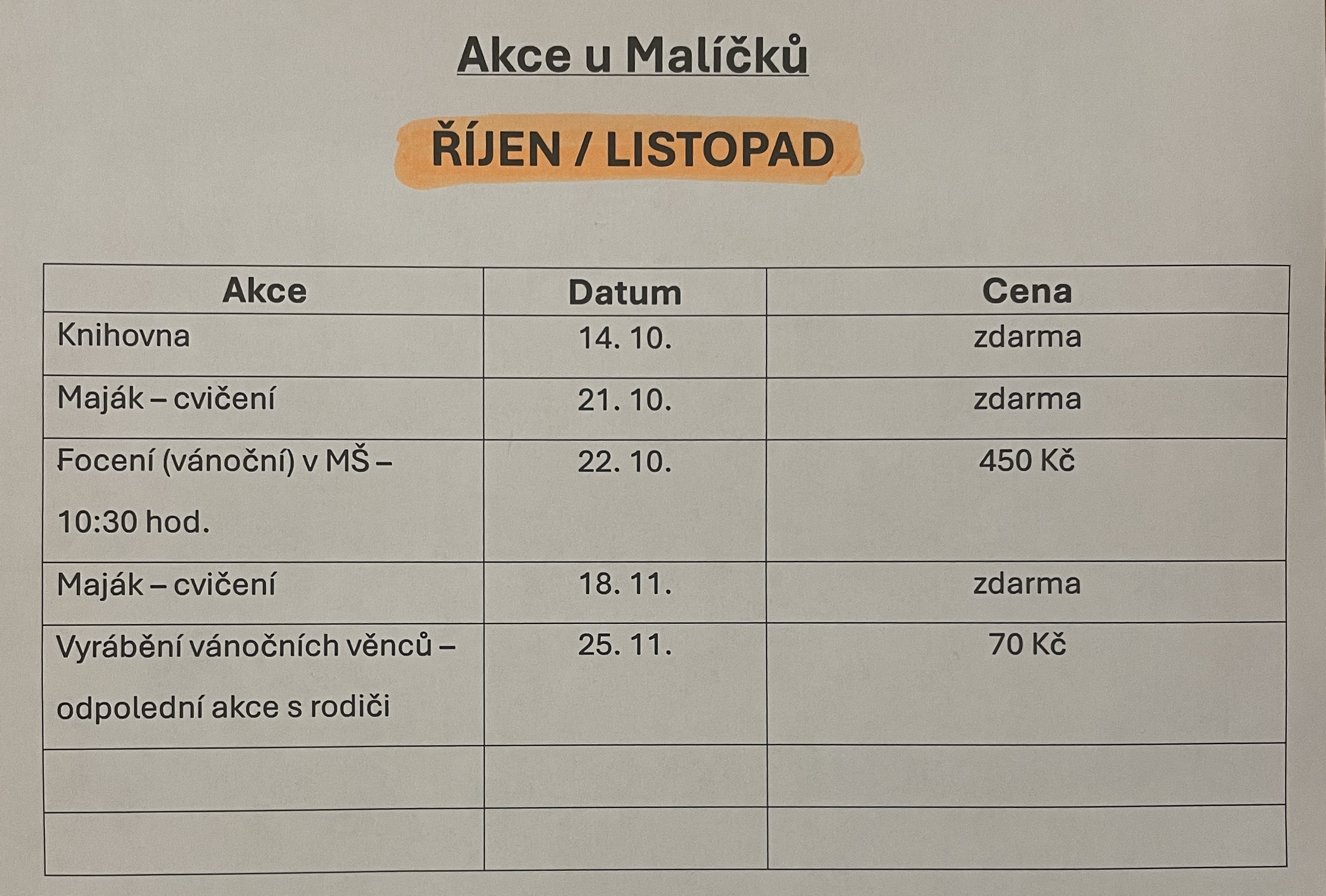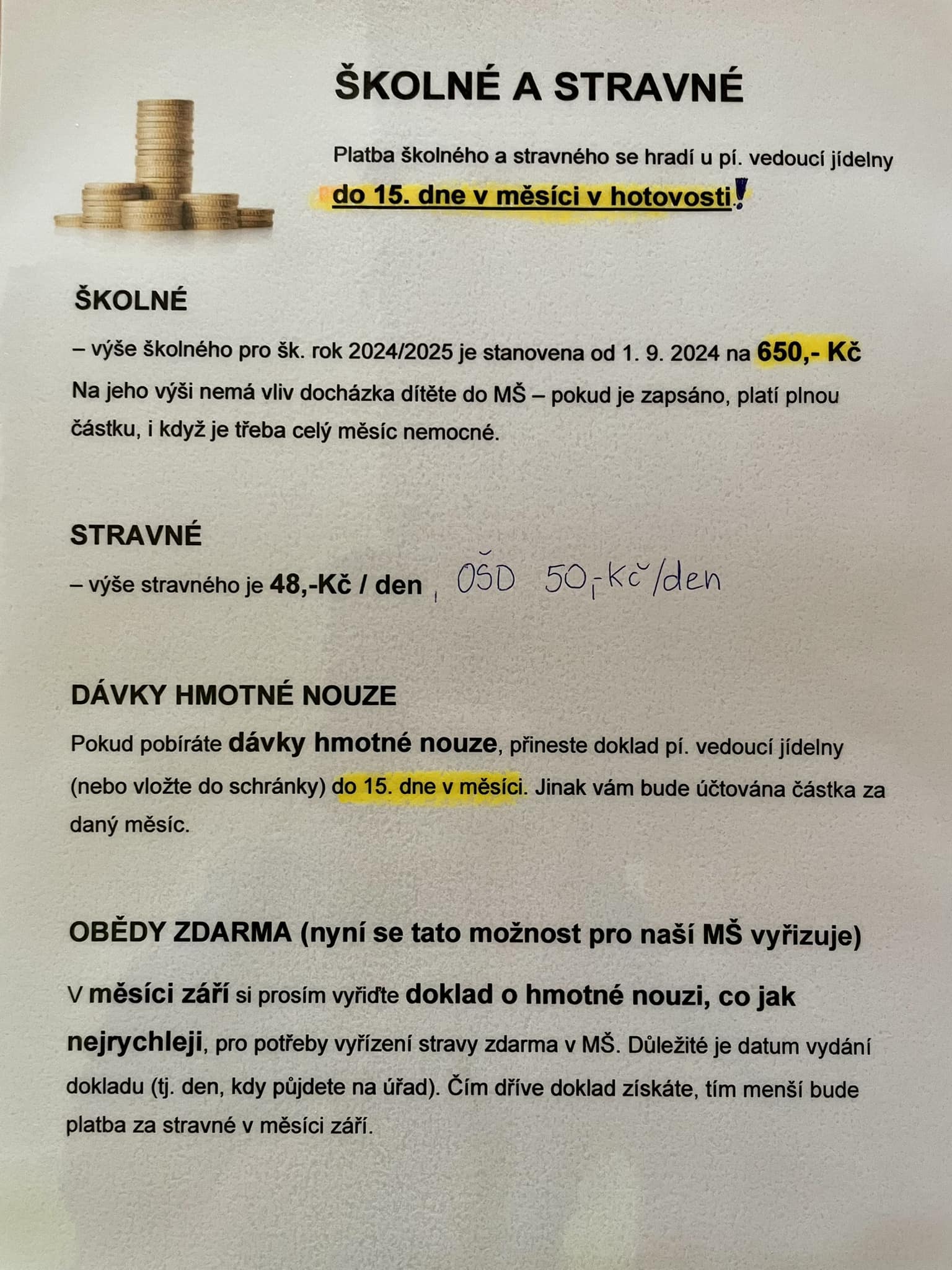 Školné za každý měsíc v MŠ 650,-Kč.